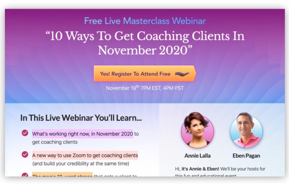 Register now, and go learn the 10 ways to get coaching clients right now, in this environment.